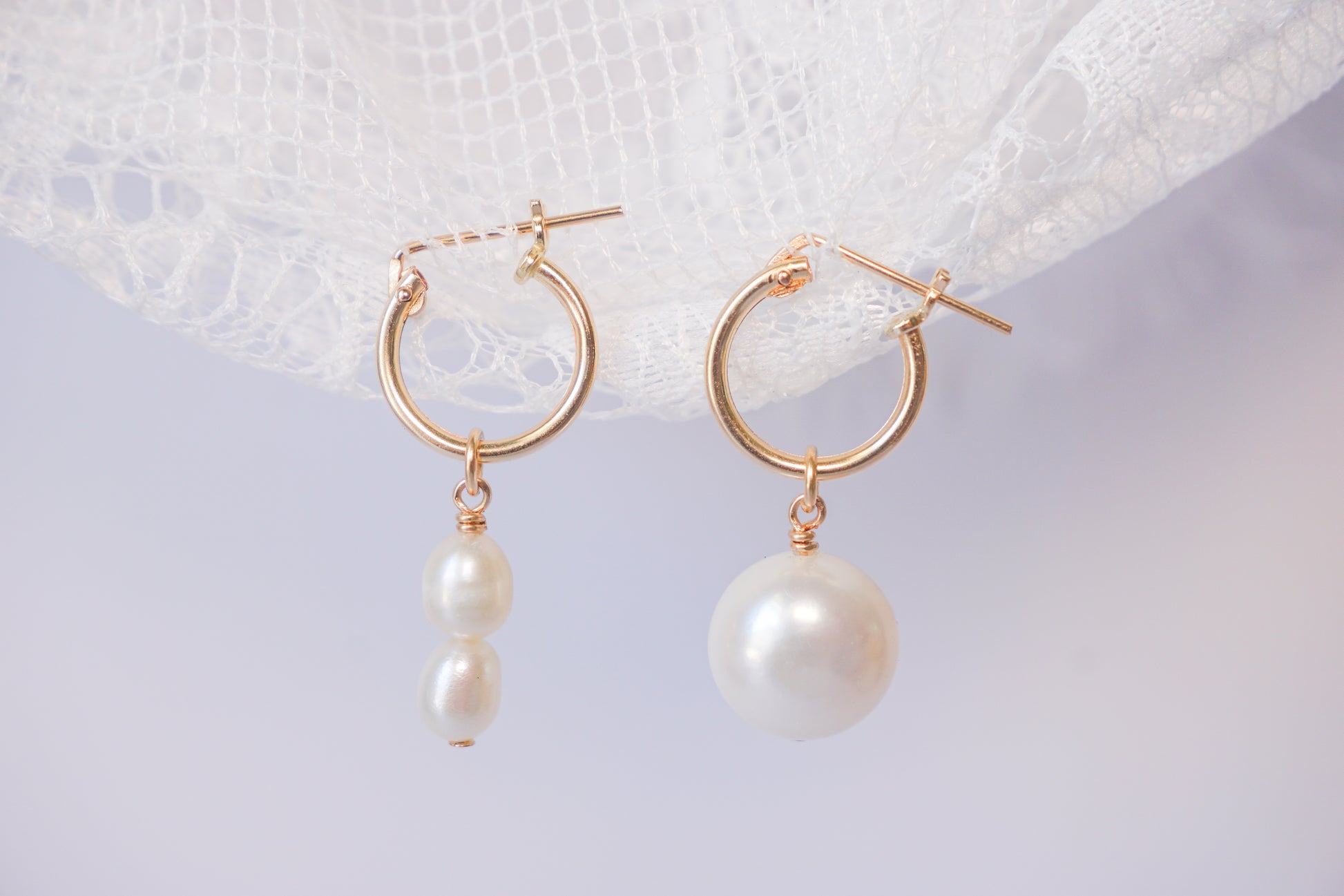 - Features: Asymmetrical design with two rice pearls on one side and one round pearl on the other; mini endless hoop style