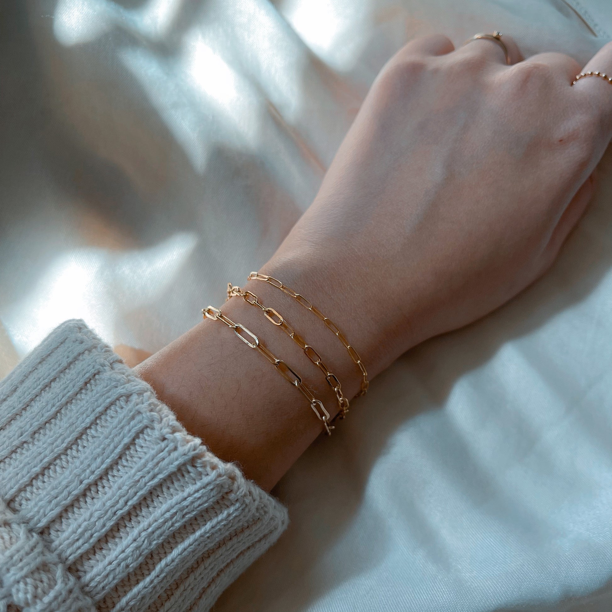 There's a quiet power in simplicity—a delicate chain that catches the morning sun, a whisper of gold that moves with you through every chapter of your day. The Minimalist Link Bracelet is more than an accessory; it's a gentle reminder of your own radiance. Handcrafted in luminous 14K gold-filled, each link is shaped with intention, creating a piece that feels both weightless and enduring. This is jewelry that doesn't demand attention—it earns it, one graceful moment at a time.