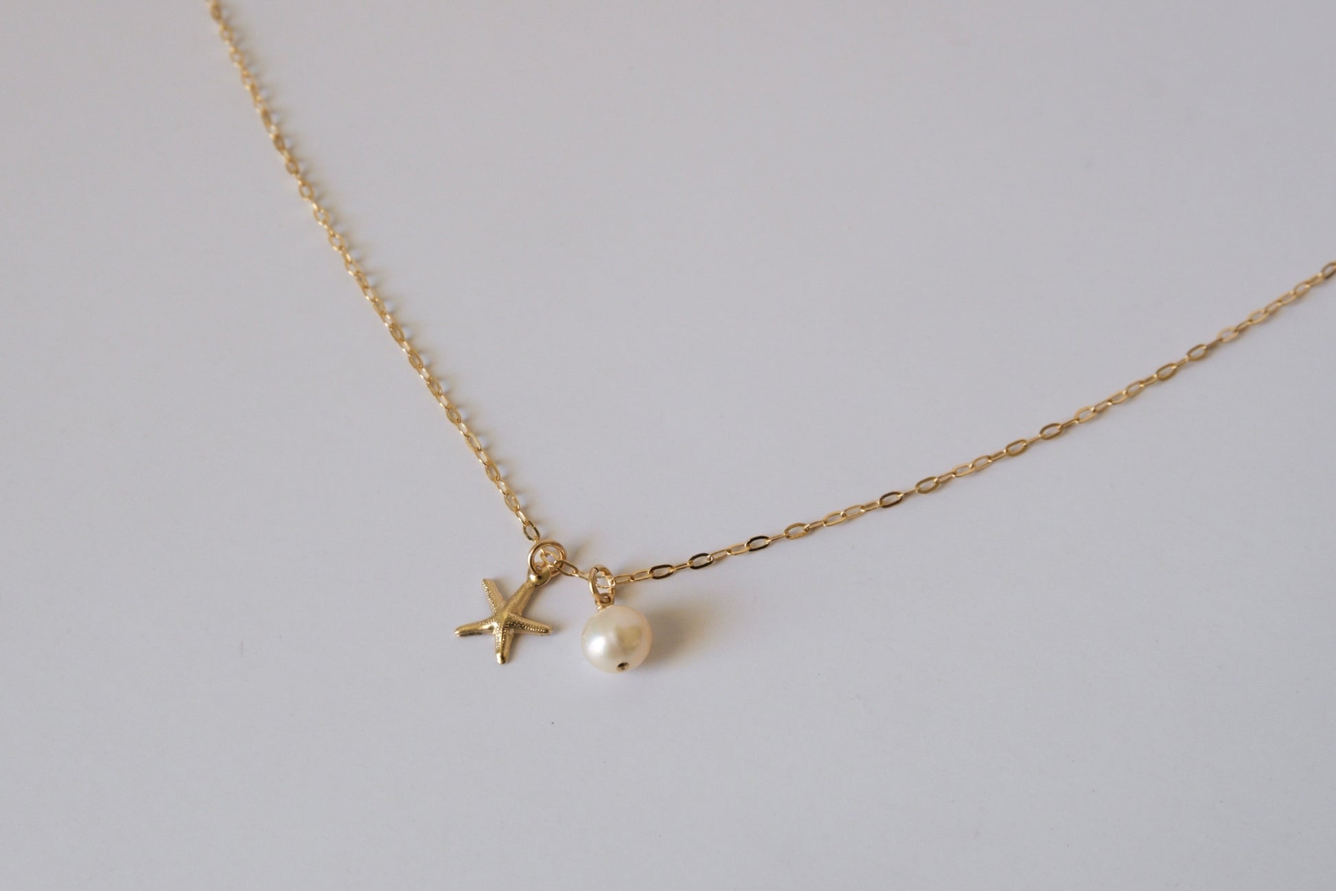 - Features: Starfish charm, luminous white pearl accent